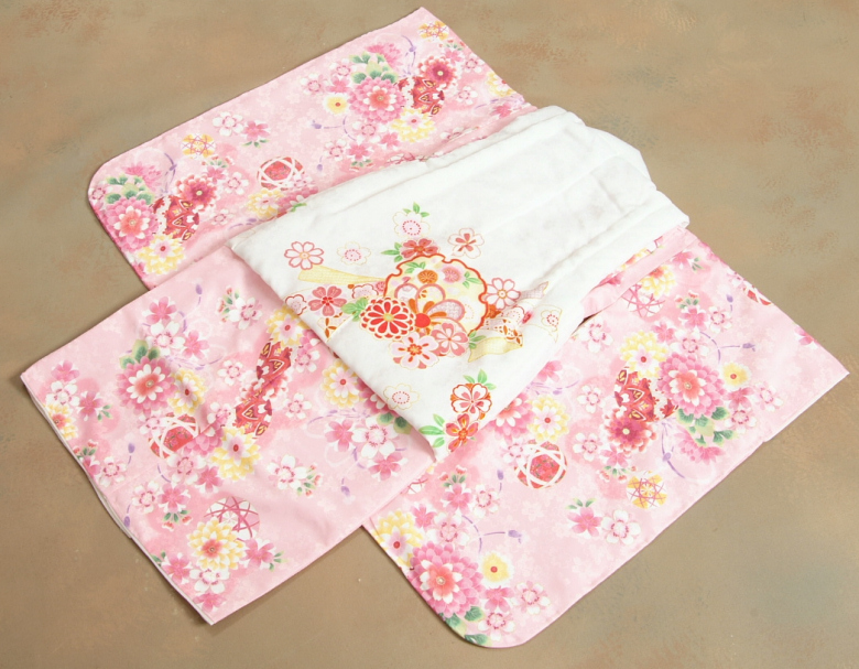 着物 ピンク地色 被布 白色 熨斗花車柄 |