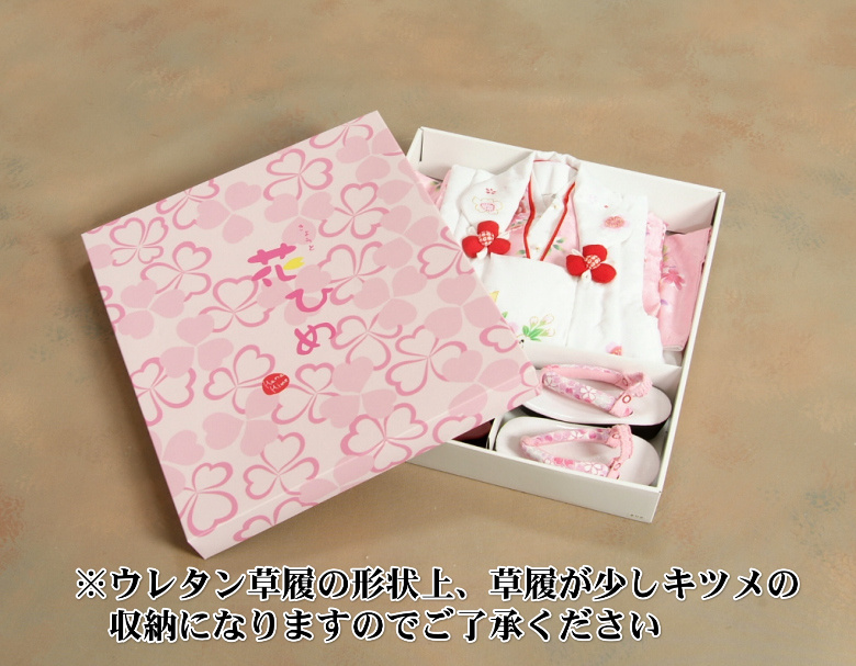 草履は足になじみの良いウレタン底の草履がセットになり足の甲の高さにもよりますが足サイズ約15cmから17cmくらいまで対応してくれて履き慣れていないお子様でも痛くなり難い柔らかな鼻緒を使用しています。