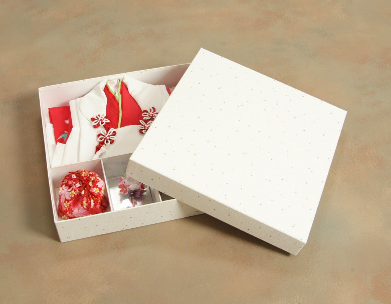 化粧箱はエンボス加工を施した厚地の多層紙に和紙を貼り付けた非常に高級感のある貼り箱になりますのでギフト包装していなくても贈答品として十分使用して頂けます。