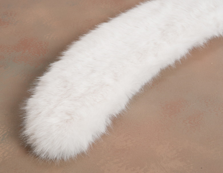 フェイクファーなので天然の毛皮ではありませんがアクリルタイプに比べて毛足が長く柔らかなポリエステル素材になりますので質感的にも満足度は高いと思います。