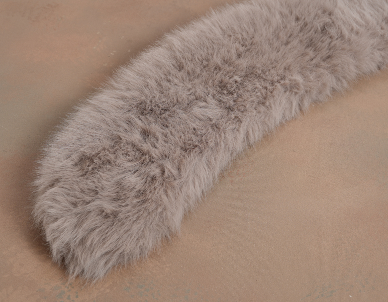 フェイクファーなので天然の毛皮ではありませんがアクリルタイプに比べて毛足が長く柔らかなポリエステル素材になりますので質感的にも満足度は高いと思います。