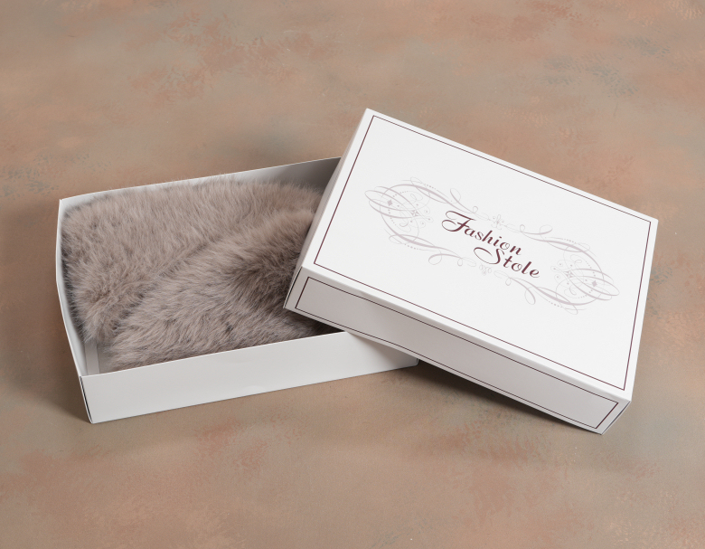 3. 振袖 ショール フェイクファー フォックス グレーベージュ色 収納箱付き 振袖 成人式 卒業式 結婚式