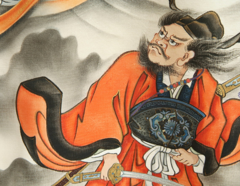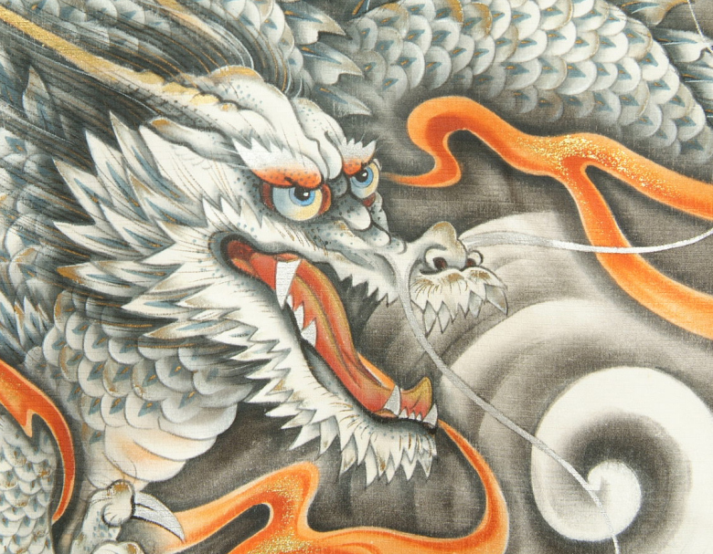 | 柄・特徴 | 咆哮飛龍 鐘馗様 手描き 手染め 金彩使い 丹後産駒綸子生地 |