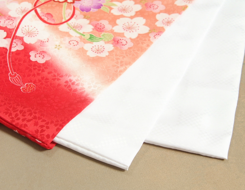 鮮やかな白色を表現するために長襦袢や飾り袖は表地に響かないように同色の「白色」を合わせてあります。