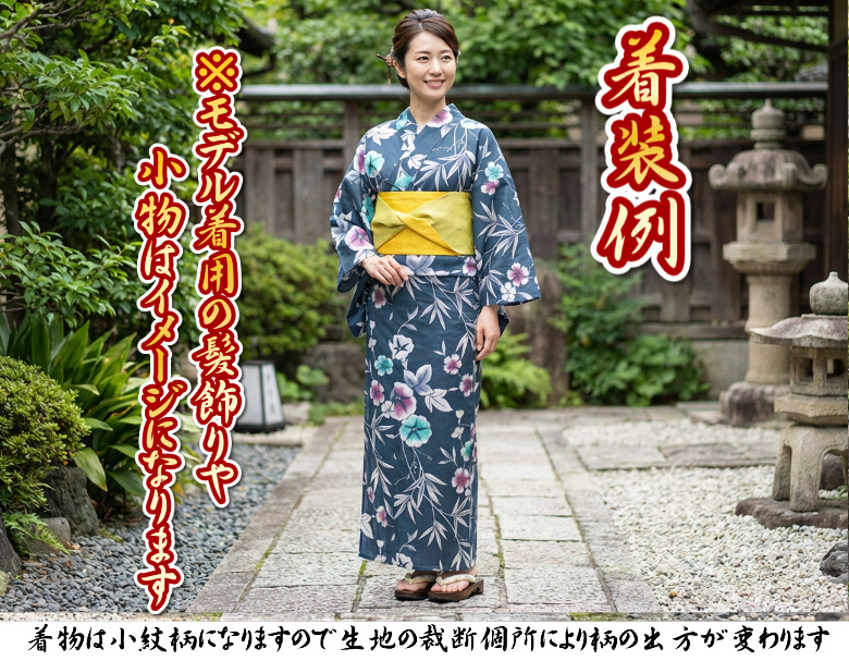 浴衣 ゆかた 凪ブランド 藍色 朝顔柄 ゆかたにピッタリな滝流れ生地使用 綿100%